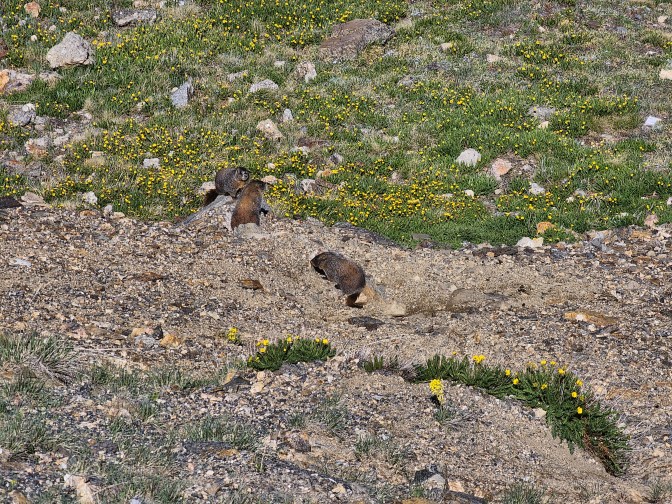 We spotted some yellow-bellied marmots at the Medicine Bow Curve overlook.