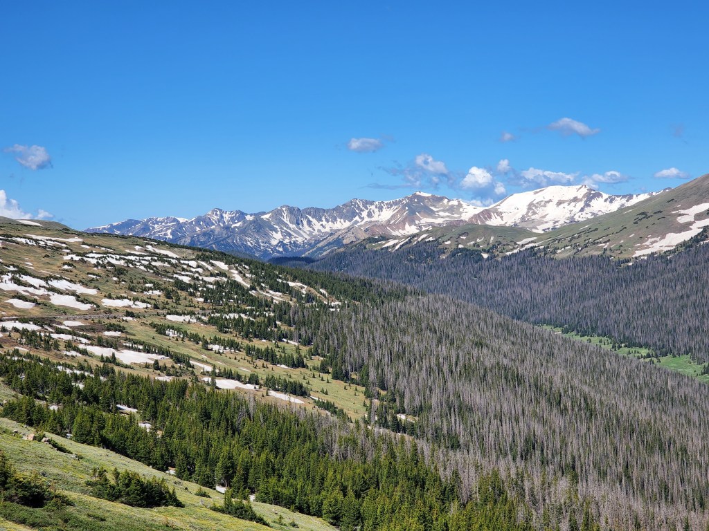 Here’s a picture from further up Trail Ridge Road, looking back at the valley.